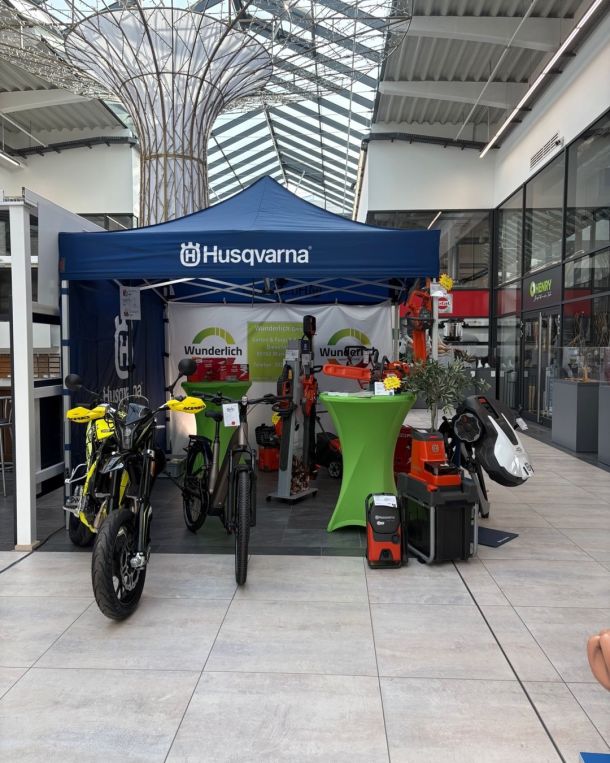 Kommen Sie in unserer großen Ausstellungshalle vorbei. Hier finden Sie vom Blasgerät bis zum Aufsitzmäher alles, was das Herz von Heimwerkern und Profis höher schlagen lässt. Zusätzlich zu unseren Produkten für die Garten- und Forsttechnik finden Sie bei uns eine große Auswahl an E-Bikes für jede Anforderung. Kommen Sie vorbei und nutzen Sie die Möglichkeit, die Produkte zu testen!